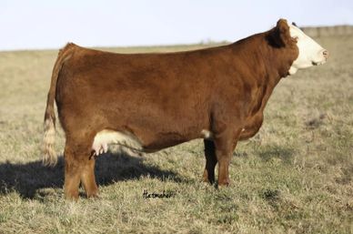 Footnote: This is a 3-in-1 package, cow is an easy keeper that is bred back to our King of Diamonds son. Heifer calf at side is out of our optimizer son and has a lot of growth in her.